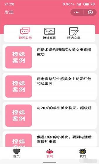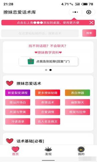 2.在微信->发现->小程序,里面搜索惯例恋爱话术库并打开