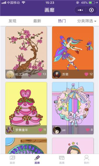 2.在微信->发现->小程序,里面搜索涂色本并打开