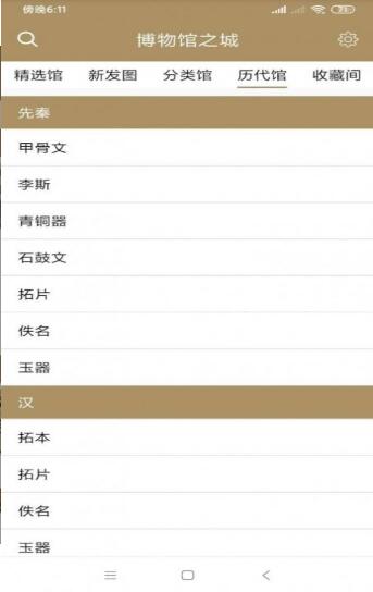 2、直接展示历代馆藏,在此可以根据朝代不同而寻找不同朝代的藏品;
