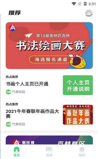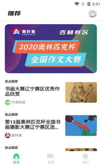1、比赛通知,及时推送了近期的作文大赛、书画比赛以及英语演讲比赛等通知;