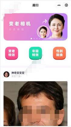 趣扫拥有时光穿梭机等变老、变年轻、变性特效,体验各种拍照特效魔法。还有丰富的明星、模特、网红、可爱等的特效效果照片可以浏览,一键即可使用同款。可以实时拍摄自己的照片也可以上传自己的照片来体验各种特效。