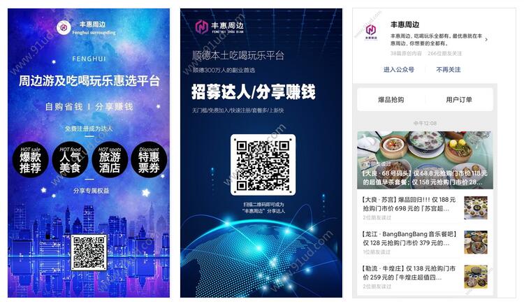 丰惠周边是继联联周边游、千千惠生活、旅划算、云客赞后的一个分享美食、景点、酒店、游乐场门票、儿童摄影、美容保健等等各种吃喝玩乐与人生活息息相关特价爆品的平台。它和团购网站类似,价格相对来说却比某团、某糯米低很多,而且,成为它的分享达人自己购买、邀请好友购买或者邀请好友注册购买、邀请好友邀请别人购买都能获得佣金,佣金额满30元即可微信提现。无需下载APP即可操作,非常简单方便。今天小编手把手教您怎么在丰惠周边赚佣金。