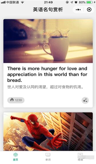 英语微学是一款教育类小程序,英语名句赏析,以及常用英语单词、短语学习。