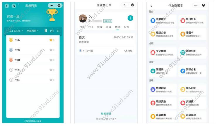 别看只是小程序,但功能毫不逊色比起使用App,作业登记本小程序无需下载、即开即用、不占手机内存 说起功能,更是亮点多多 ·作业种类丰富· 班级、小组、打卡作业,满足大家的全面需求 我们作业登记簿的宗旨是你需要的,我们都有简单方便,即开即用,功能全,,解决家校沟通难题,帮助老师更好的管理班级